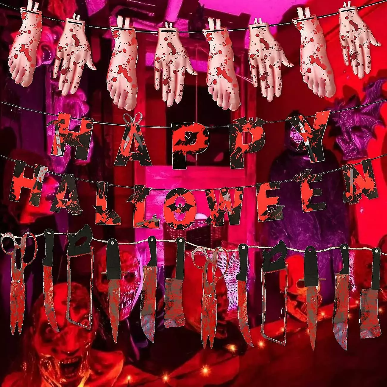 Baicccf Other Decoration For Christmas Halloween Decoration Horror Hanging Decoration Bloody And Hand Foot Garland Decoration Set, Garden Party Hanging Decora