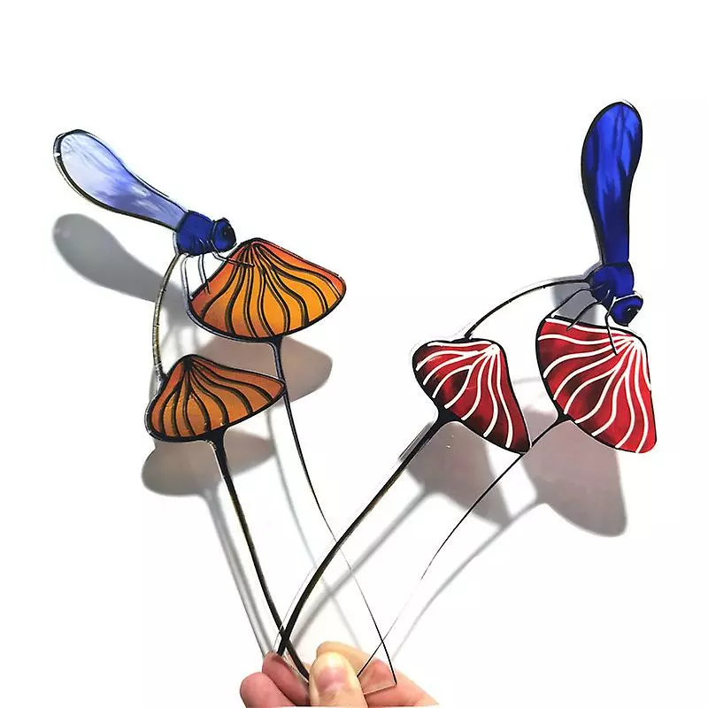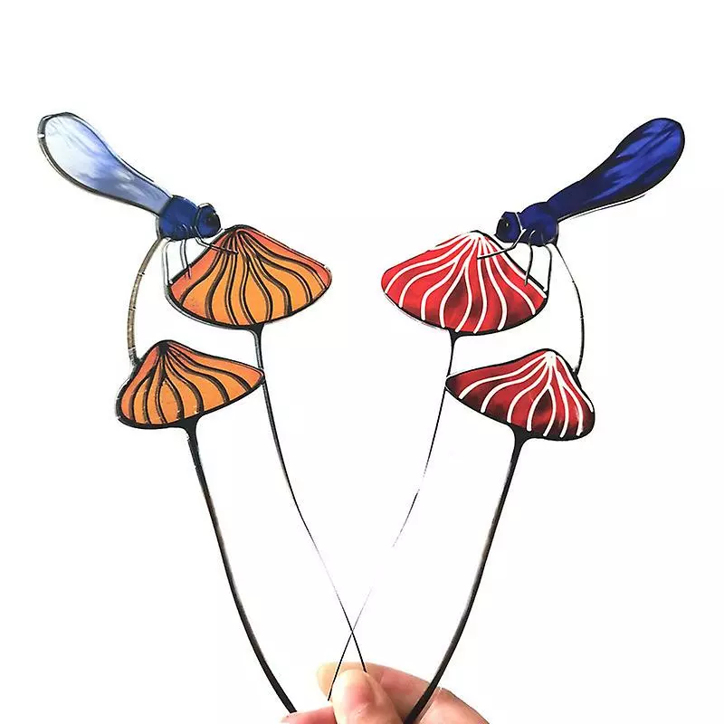 2.Dragonfly standing on the mushroom is very leisurely, enjoy the leisure time