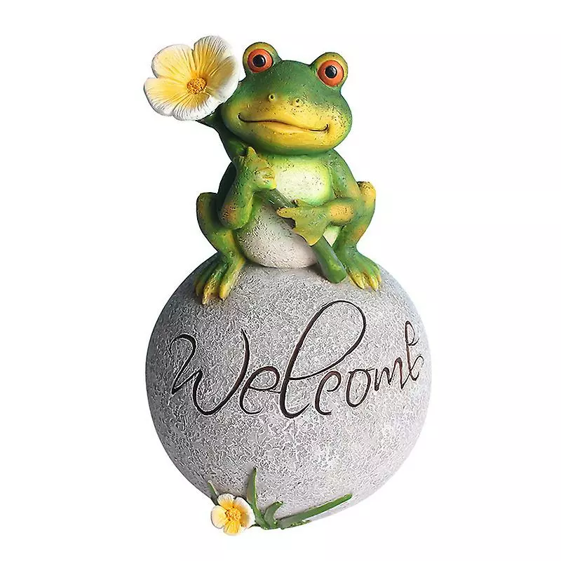 2.This drinking coffee frog sitting on a stone is crafted from high quality resin to prevent cracking, chipping, and fading,it will not fade even bad weather.