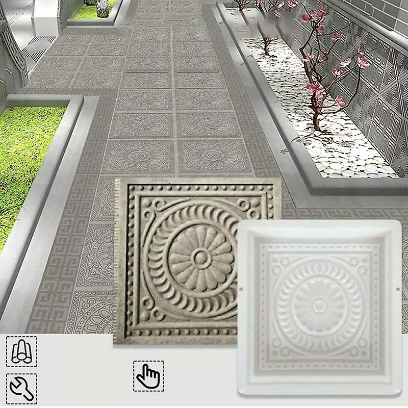 5. Uudelleenkäytettävä muotti betonille, sementille. Helppo käyttää luomaan kaunis askel, polku, puutarhan kävelytie. Muotti on valmistettu muovista, jonka avulla voit käyttää muottia uudestaan ja uudestaan.