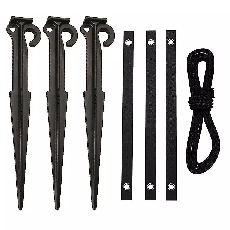 2. Complete kit: Complete kit: This ground anchor kit contains everything you need to provide users with a satisfactory tree planting experience. You will receive 3 x reusable plastic tree nails, 3 x perforated braid band, 1 x 4m braided rope.