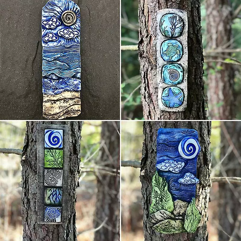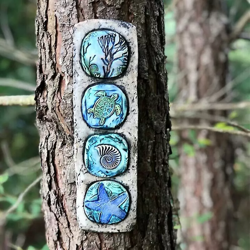 4.They are hand cast in stone and painted by me with a weather resistant oil paint. Since each piece is hand-painted, coloring may vary ever-so-slightly but will follow the same color design shown here.