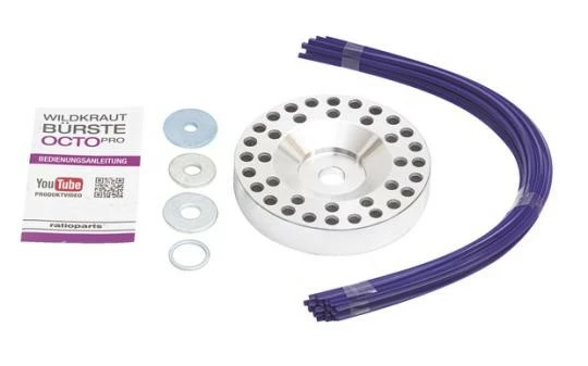 Yli 30 kuutioisille trimmereille soveltuva alumiininen rikkaruohoharja. Ulkohalkaisiha 123,5mm ja keskireirä 20/25,4