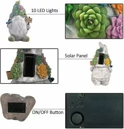 Unbranded Garden Gnome Statues , Solar Powered Outdoor Lights Art Gifts With 10 Warm White Leds A
