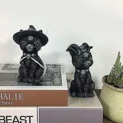 Unbranded Halloween Black Cat Decoration Outdoor Indoor Lawn Resin Cat With Witch Hat,wings,desktop Ornament Funny Garden Statue Figurine Sculpture For Front Ya