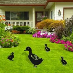 Unbranded 4 Pcs Black Hollow Iron Duck Family Shape Garden Sculptures Statues Ornament