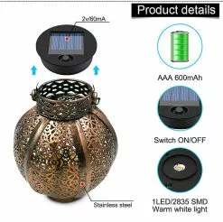 Cumdel Hanging Solar Lanterns Retro Hollow Solar Lights With Handle Outdoor Solar Garden Lights Decor For