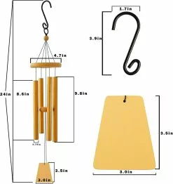 Hakuna Outdoor Wind Chimes Dark Tone 24 Inch 4 Rust-proof Aluminum Tube Wooden Metal Outdoor Garden Terrace Balcony And Home Decoration