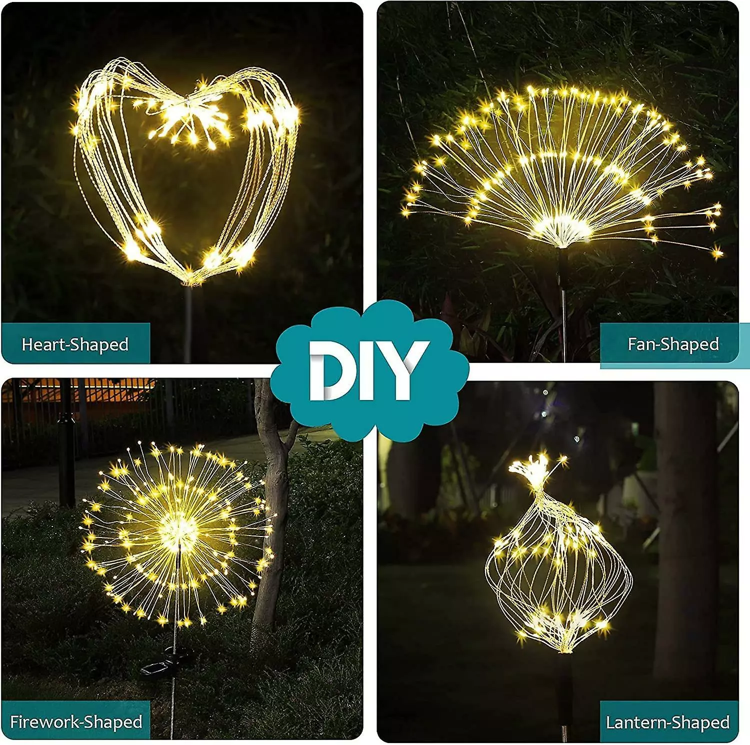 DIY Any ShapeYou can flexible to DIY any shape, such as fireworks, flowers, heart, spiral, spherical, etc…, solar string lights will brings you unlimited surprises