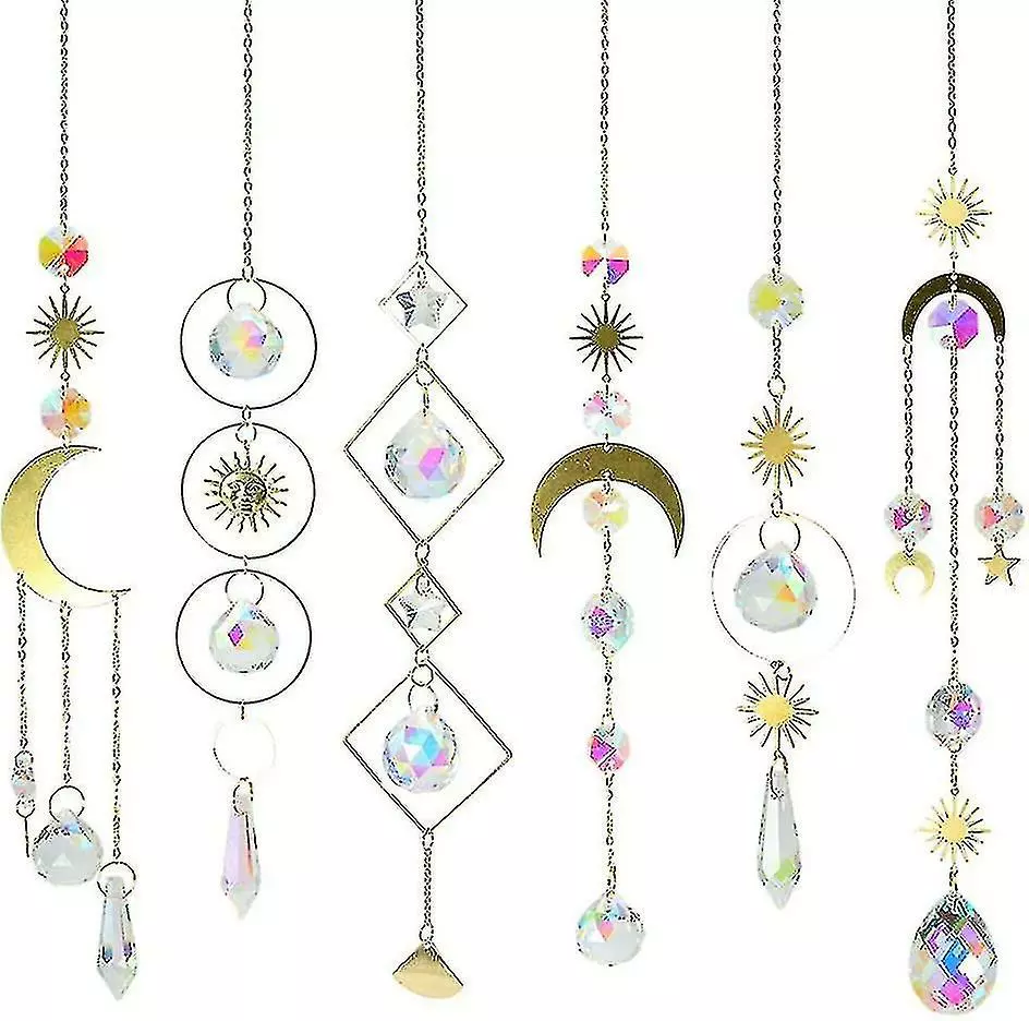 Nufasion Other Garden Statue 6 Pieces Colorful Crystals Suncatcher Hanging Suncatcher With Chain Pendant Ornament Crystal Balls For Window Home Garden Chri