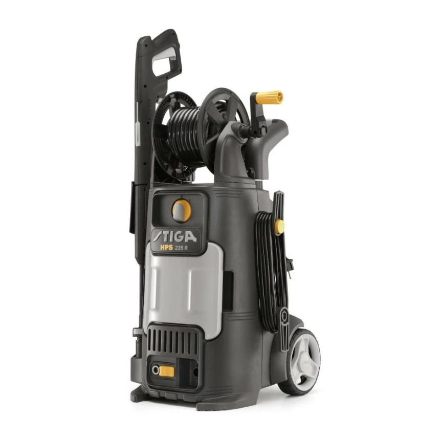 STIGA HPS 235 R -painepesuri on suunniteltu keskikokoisten pintojen puhdistamiseen mukavasti ja helposti. Tässä kylmää vettä käyttävässä painepesurissa on 1 800 W sähkömoottori, joka tuottaa 135 baarin maksimipaineen ja sen maksimi vesimäärä on 440 l/h. 6-metrisen korkeapaineletkun voi kelata laitteen päällä olevaan letkukelaan. HPS 235 R on erittäin kevyt, vakaa ja helposti liikutettava 150 mm muovipyörien ja teleskooppiaisan ansiosta. Siinä on myös käytännölliset säilytystilat osille ja varusteille. Se on ihanteellinen kohtalaisen haastaviin puhdistustöihin. Sillä puhdistaa tehokkaasti mm. puutarhatyökalujen ja -laitteiden, terassien, pihojen ja portaikkojen, polkupyörien, moottoripyörien, autojen sekä kivetysten, polkujen ja puisten esineiden pinnat.