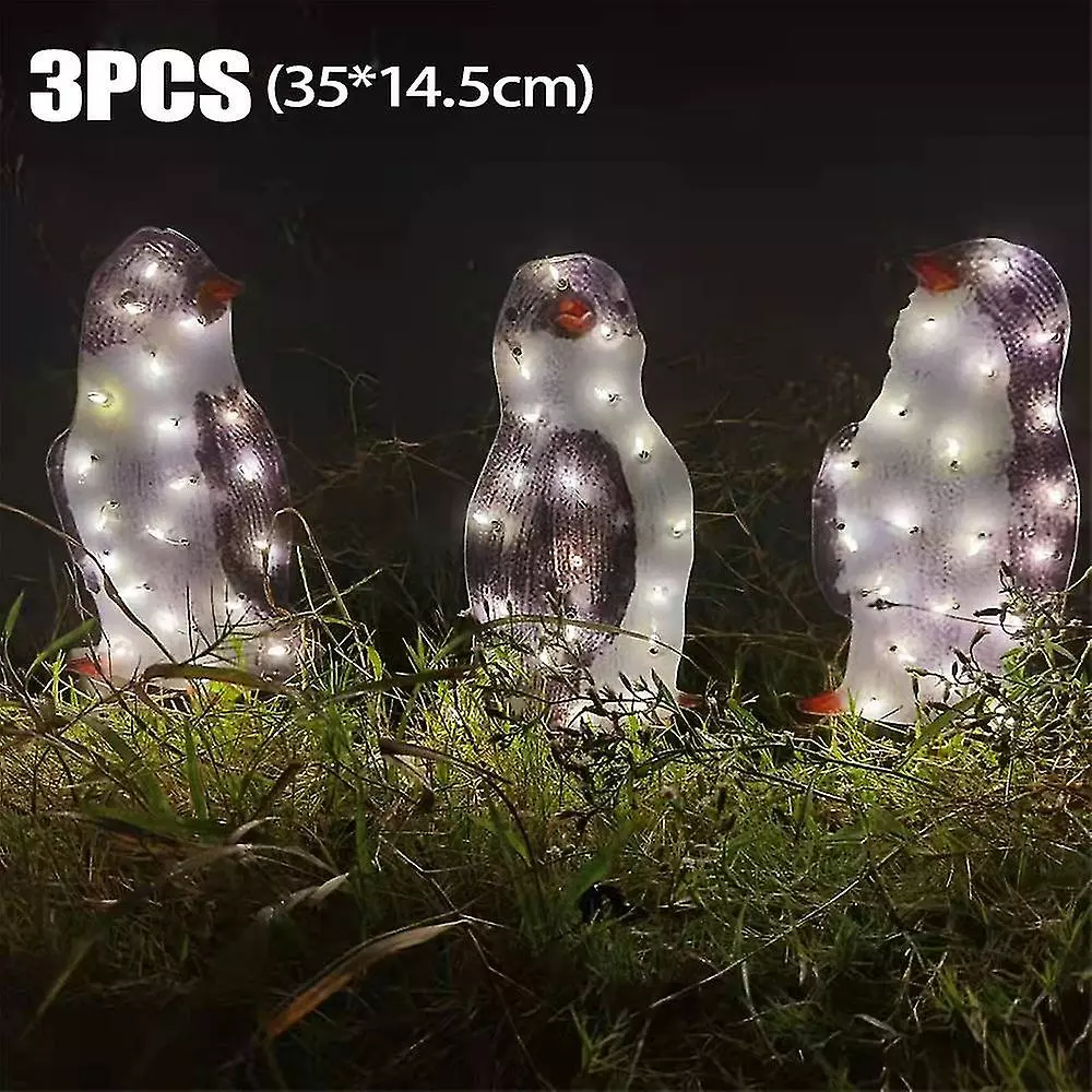 3Pcs/Set Christmas Penguin LED Light Up Decor Garden Patio Figurine Indoor Outdoor Xmas Ornament