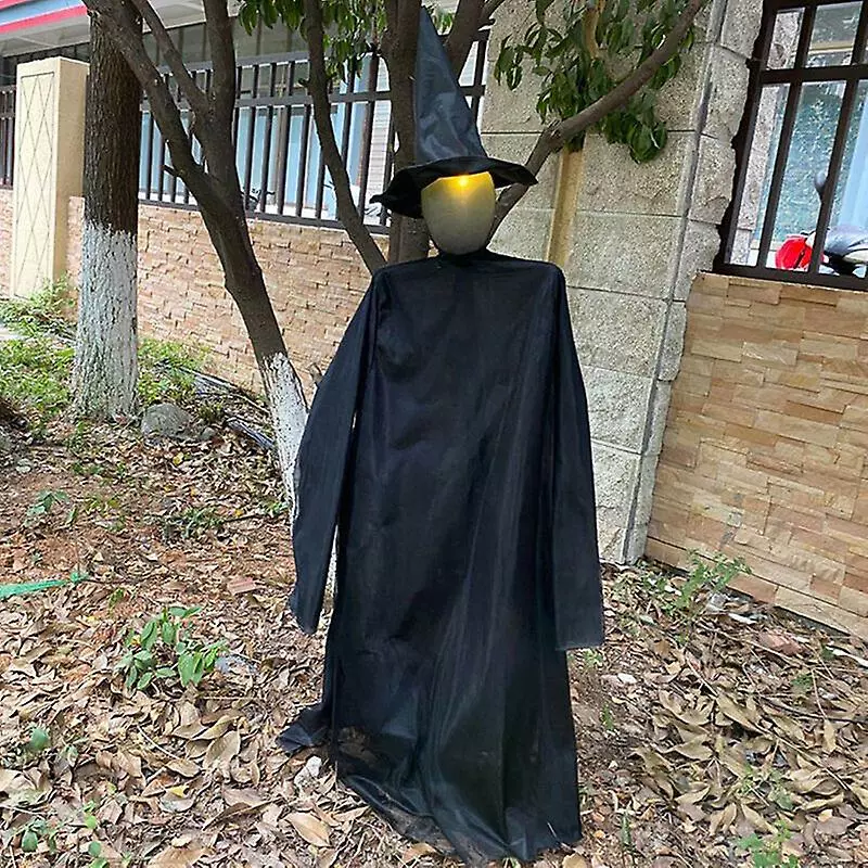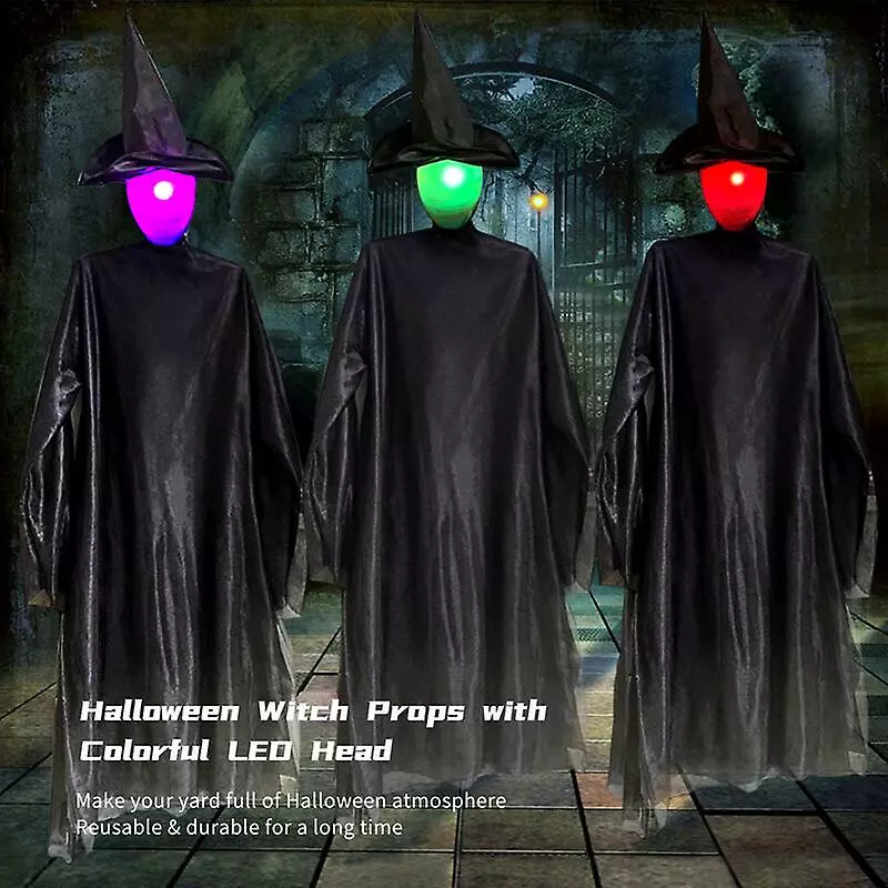 Unbranded 68 Inch Halloween Witch Props With Colorful Led Head Outdoor Scary Witch Plug-in Halloween Witch Ornament For Yard Garden Party Bar Creepy Decoration,