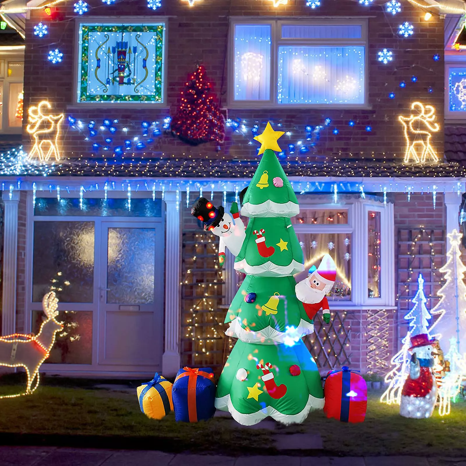2. Excellent Craftsmanship: The Christmas trees are made of high strength Polyester, which is against rips and tears, the excellent stitching improves the durability of the inflatable decoration.