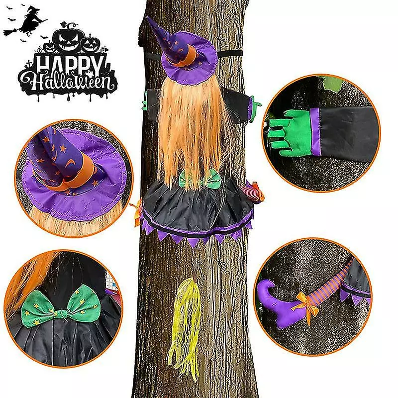 Unbranded Halloween Party Witch Hits The Tree Garden Decoration Porch Witch Doll Hugs Tree Ghost Festival Props Arrangement Tree Climber