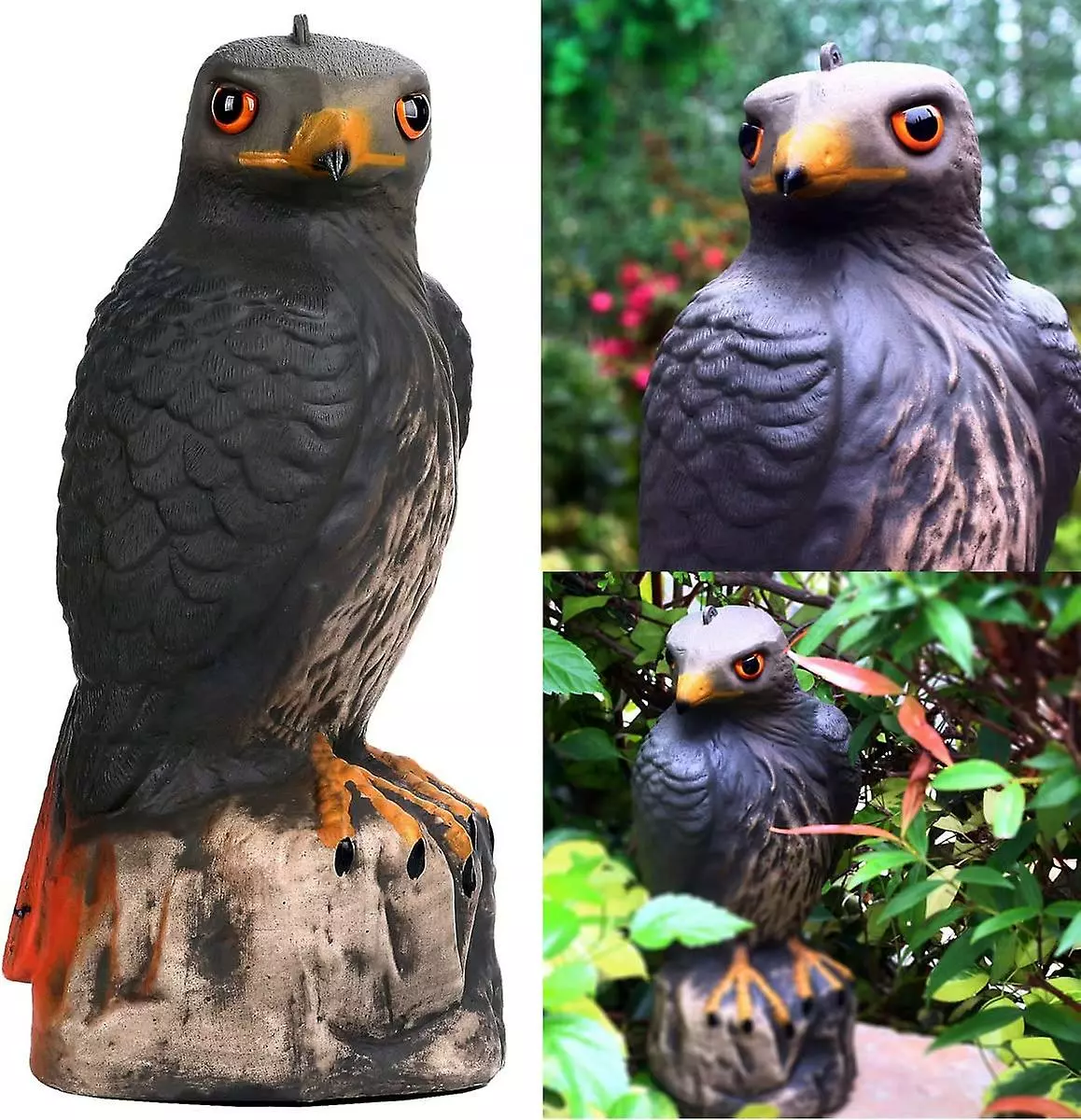 Material: plastic. Made of weather resistant plastic. The Realistic Hawk Eagle Bait Bird Statue is made of high quality plastic and is well made, waterproof outside, beautiful and practical.