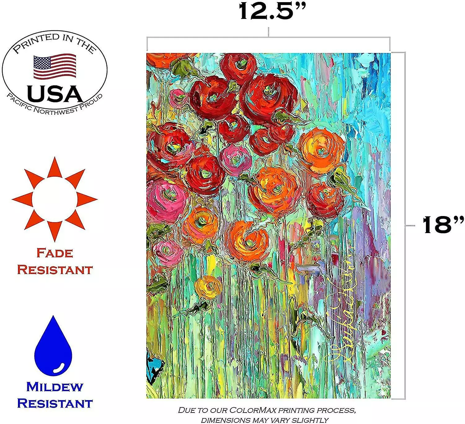 This 12.5 x 18 inch garden flag fits on all of Toland’s standard garden flag stands, arbors, and hangers.