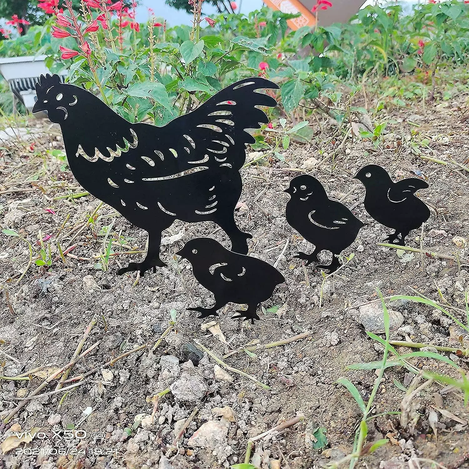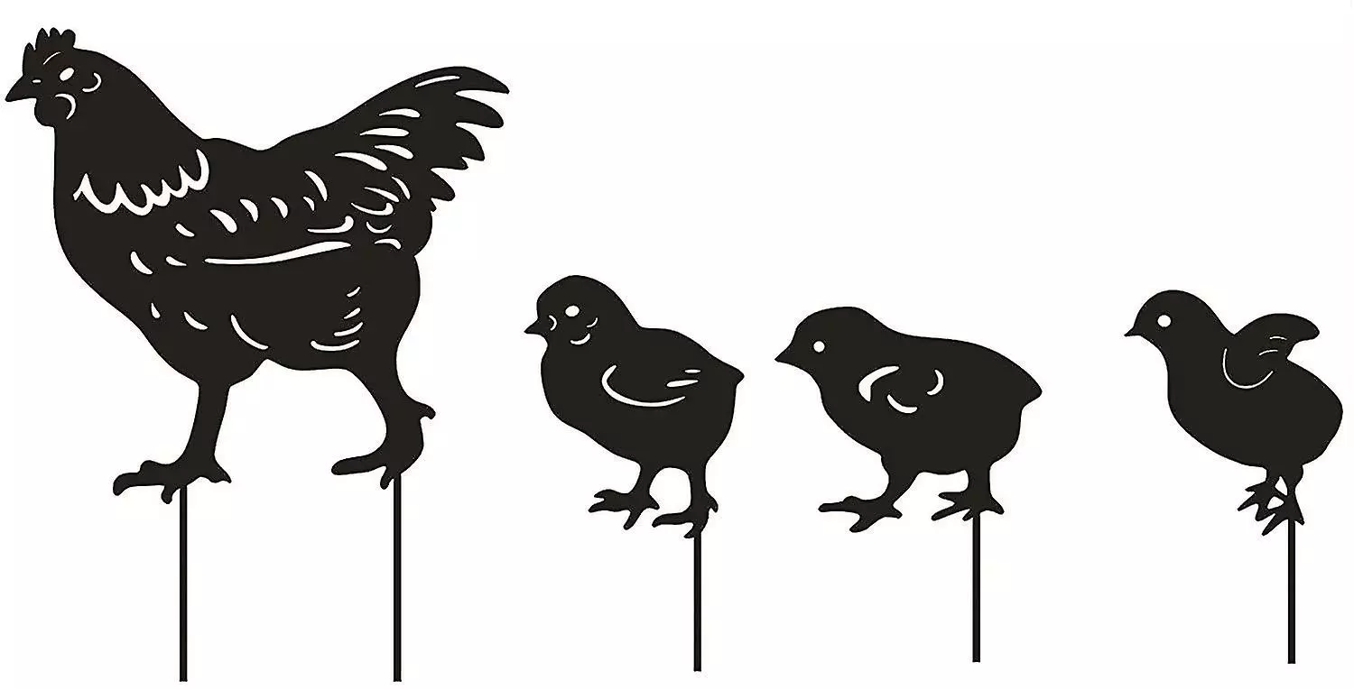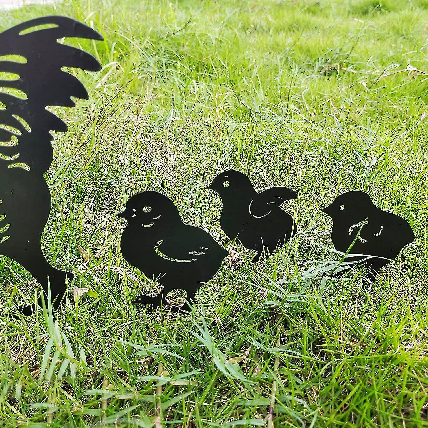 Interesting design- Hens and hens for garden decoration, unique design, empty and elongated appearance. Designed with nuts on the back of the hen, you can put the chicks down, which gives a warm image of the hen carrying the very cute chicks.