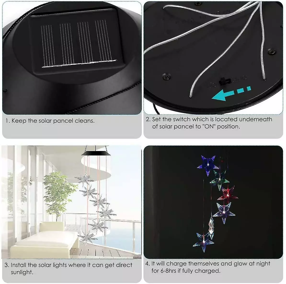 2. Keep the solar panel clean by wiping it regularly with a damp cloth.
