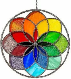 Window hanging pendant adds bright colors to your living space. Every morning, the sun can shine through the stained glass