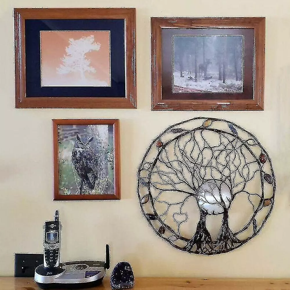 Tree of Life Metal Wall Hanging Art Circle Sculpture Garden Home Modern DecorationSpecification:Material: metalSize: approx. 25cmFeature:Metal wall art sculpture that breathes life into any space, home, office, or ceremonial / celebration site.Ultimate crystal grid for sacred rituals, harmonizing meditation wall art for yoga studio decor.Convenient to use.Long service life.Package included: 1 x tree hanging plaqueNote:Please allow 0-1cm size errors due to manual measurement.Item color displayed in photos may be showing slightly different on your computer monitor since monitors are not calibrated same.